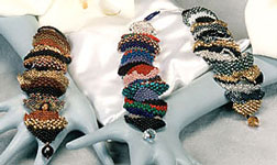 Lilly's Shaggy Chic collection of bracelets are made of vintage and new Czech press-molded glass beads, Swarovski crystals, and pearls, on a strong base made of fine glass seed beads, woven with our special 4-ply nylon thread - warranteed not to break.(*see warranty for details). Select from our most popular color combinations and available in custom lengths and widths.